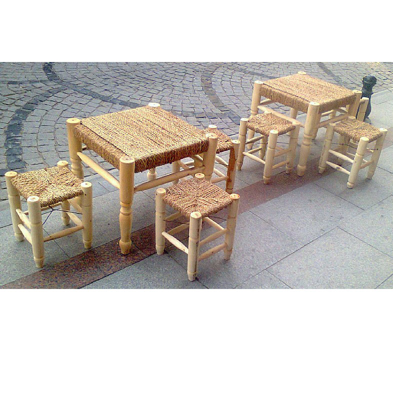 Klasik Hasır Tabureler: Geleneksel el dokuması tekniğiyle hazırlanmış, doğal ve sıcak bir görünüm sunar.
